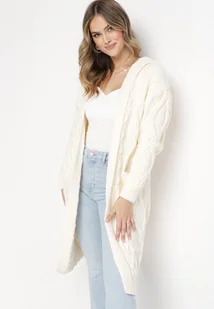Beżowy Niezapinany Długi Kardigan z Kapturem Wanharice