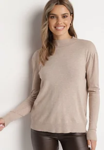 Beżowy Sweter ze Stójką Mirivra