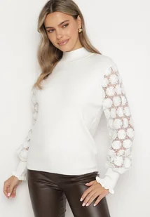 Biały Sweter Półgolf z Wiskozą i Ażurowymi Rękawami Liariel