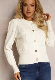 Biały Wiskozowy Kardigan ze Ściągaczami Zapinany na Guziki Genadia