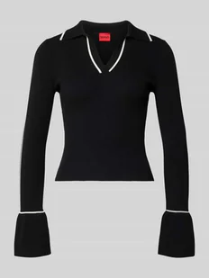 Bluzka z dzianiny damska HUGO;Model ‘Samur’;Efekt: jednolity kolor;Krój: Krój slim fit;Detale: Paski w kontrastowym kolorze;Dekolt: Dekolt w serek;Rękaw: