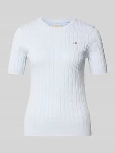 Bluzka z dzianiny damska Gant;Mieszanka bawełny z dodatkiem streczu;Krój slim fit;Ścieg warkoczowy;Wyhaftowane logo;Okrągły dekolt;Długość tyłu w rozmiarze S: 57 cm;Długość rękawa w rozmiarze S: 24 cm