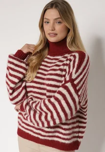 Bordowy Golf z Domieszką Wełny w Paski Monallia