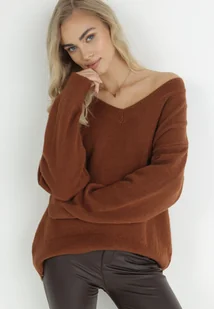 Brązowy Sweter z Wiskozy Oversize Yorate