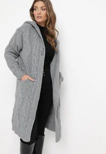 Ciemnoszary Niezapinany Długi Kardigan z Kapturem Wanharice