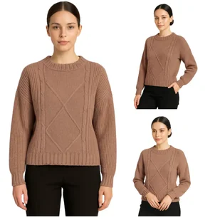 Sweter damski beżowy ciepły warkoczowy splot klasyczny dekolt okrągły elegancki Captain Mike. Stylowy i ponadczasowy sweter z golfem wykonany z wysokiej jako...