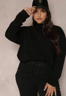 Czarna Bluzka z Półgolfem Zdobionym Haftem Savku