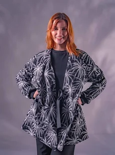 Wiązana narzutka wy.konana jest z grubej, mięsistej dzianiny. Miękkie poły z przodu ładnie układają się z efektem delikatnej fali. Materiał: dzianina Poliester 95%, elastan 5 % Fason: prosty wiązanie ...