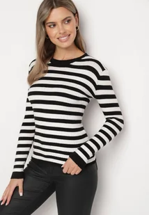 Czarno-Biały Sweter o Klasycznym Kroju w Paski Zinolla