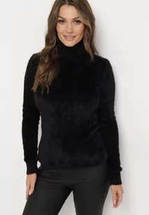 Czarny Elastyczny Golf z Puszystej Tkaniny z Wełną Doulcet
