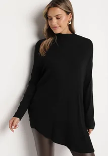 Czarny Golf z Wiskozą o Asymetrycznym Kroju i Nietoperzowych Rękawach Reandriael
