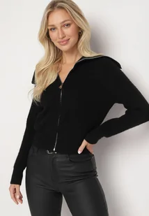 Czarny Kardigan Dzianiny z Wełną z Golfem Zapinany na Suwak Zinellia