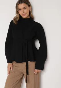 Czarny Kardigan z Wiskozą i Wiązaniem w Pasie Tusvela