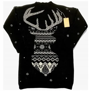 Sweter wykonany jest z miękkiego i przyjemnego w dotyku 100% akrylu, co zapewnia ciepło i komfort noszenia nawet w najchłodniejsze dni. Uniwersalny rozmiar (S-XL) gwarantuje doskonałe dopasowanie do różnych sylwetek. Świąteczny motyw renifera dodaje swetrowi uroku i świątecznego klimatu. Doskonale sprawdzi się jako element garderoby na świąteczne spotkania rodzinne czy też jako prezent dla bliskiej osoby. Wymiary Biust 104 cm Pas 100 cm Biodra 100 cm Długość 80 cm Skład 100% akryl.