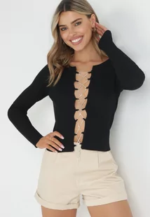 Czarny Sweter z Gorsetowym Wiązaniem z Przodu z Cyrkonii Blinca