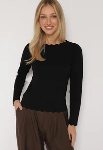 Czarny Sweter z Wiskozą Ozdobiony Falbankami Mevita