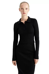 DeFacto Sweter normalny krój dla kobiet - sweter z golfem na topy damski (czarny, XL), czarny, XL
