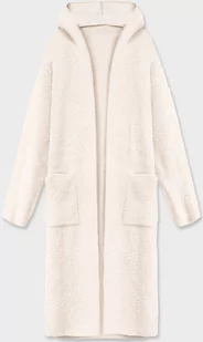 DŁUGA WEŁNIANA NARZUTKA ALPAKA Z KAPTUREM ECRU (M105-1) - MADE IN ITALY