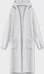 DŁUGA WEŁNIANA NARZUTKA ALPAKA Z KAPTUREM JASNOSZARA (M105-1) - MADE IN ITALY