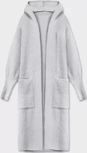 DŁUGA WEŁNIANA NARZUTKA ALPAKA Z KAPTUREM JASNOSZARA (M105) - MADE IN ITALY