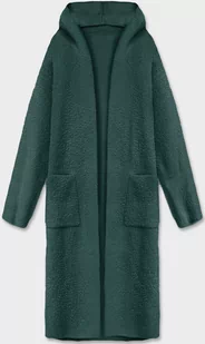 DŁUGA WEŁNIANA NARZUTKA ALPAKA Z KAPTUREM MORSKA (M105-1) - MADE IN ITALY