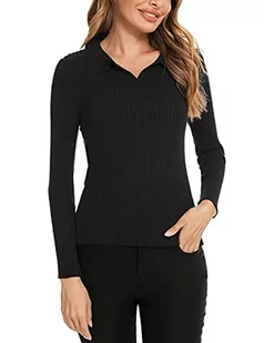Doaraha Damski sweter z dzianiny z długim rękawem, dziergany, polo z dekoltem w kształcie litery V, elegancki sweter z dzianiny, na jesień i zimę