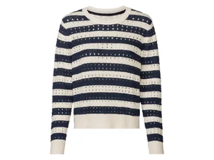 esmara® Sweter damski z teksturowanej dzianiny w prążki (Granatowy prążkowany, XL (48/50))