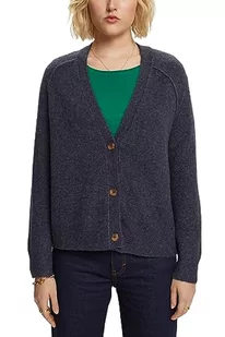ESPRIT Kardigan zapinany na guziki z dekoltem w serek, mieszanka wełny, grantowy, XL