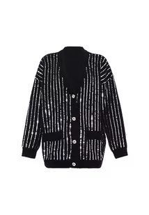 faina Damski kardigan w paski z dekoltem w serek i cekinami, czarny, rozmiar XL/XXL, czarny, XL