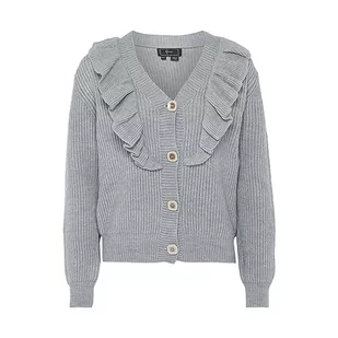 faina Damski rozdwajany drewniany brzeg uszu, dekolt w serek, modny kardigan akrylowy, jasnoszary, melanż, rozmiar XS/S, jasnoszary melanż, XS