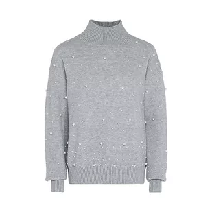 faina Damski sweter z cekinami, elegancki sweter akryl jasnoszary melanż rozmiar M/L, jasnoszary melanż, M