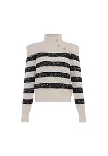 faina Damski sweter z dzianiny w paski z półwysokim kołnierzem i ukośnym guzikiem WOLLBIAŁY rozmiar M/L, biały (wollweiss), M