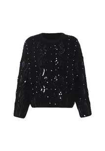 faina Damski sweter z dzianiny z cekinami, czarny, rozmiar XL/XXL, czarny, XL
