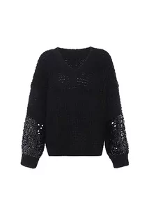 faina Damski sweter z dzianiny z dekoltem w serek i cekinowymi rękawami, czarny, rozmiar XL/XXL, czarny, XL