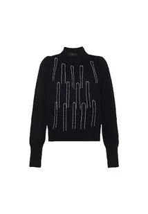faina Damski sweter z okrągłym dekoltem i łańcuszkiem z cekinami, czarny, rozmiar M/L, czarny, XL