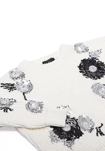 faina Damski sweter z okrągłym dekoltem z cekinami i wzorem kwiatowym Wełna BIAŁA, rozmiar XS/S, biały (wollweiss), XL