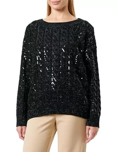 faina Damski sweter z skręconej dzianiny cekinowej z okrągłym dekoltem CZARNY rozmiar XL/XXL, czarny, XL