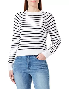 French Connection Damski sweter z okrągłym dekoltem Lillie Mozart w paski, letni biały/niebieski użytkowy, M