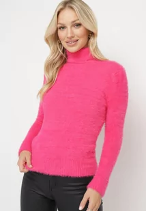 Fuksjowy Elastyczny Golf z Wełną i Ściągaczami Ozdobiony Długim Włosem Alussone
