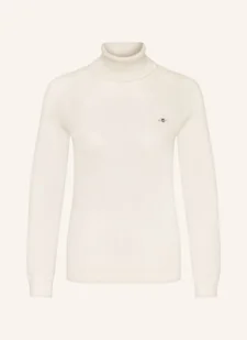 Gładki ścieg. Prosty krój. Golf. Prążkowane ściągacze przy rękawach i rąbku. Haft z logo na wysokości klatki piersiowej. Miękki w dotyku materiał. Z wełny