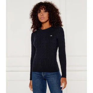 GANT Damski sweter ze stretchu, bawełna Cable C, Evening Blue, Standard, niebieski (Evening Blue), M