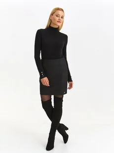 Golf damski Top Secret dopasowany z ozdobnymi guzikami. Przepełniony niecodzienną wygodą oraz dużym komfortem podczas użytkowania dopasowany golf damski, który przylega do kobiecej sylwetki i eksponuje jej smukłość. Posiada on proste długie rękawy zakończone zdobieniem trzema guzikami, a u góry ma ciepły prążkowany kołnierz golfowy. Wykonany on został z przyjemnej w dotyku oraz dobrej gatunkowo dzianiny, będąc cenionym za oferowane ciepło oraz niecodzienną miękkość. Pięknie komponuje się on zarówno z elegancką spódnicą, jak i również klasycznymi długimi spodniami.