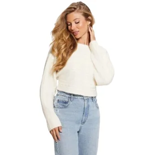 GUESS KREMOWY SWETER DAMSKI Z CIEKAWYM TYŁEM Opis Produktu Marka GUESS Kolor kremowy Skład 68% akryl 28% poliester Metka papierowa Tak Metka wewnętrzna Wycię...