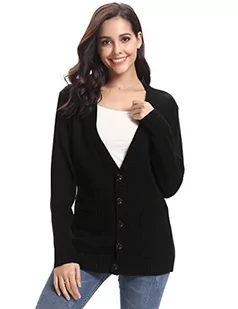 Irevial Damski kardigan z długim rękawem, elegancki płaszcz z dzianiny, z zapięciem na guziki i kieszeniami, S-XXL, 1-czarny, S