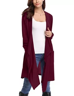 Irevial Damski kardigan z długim rękawem, z odkrytymi kieszeniami, na wiosnę i lato, czerwone wino, M