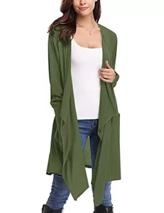 Irevial Damski kardigan z długim rękawem, z odkrytymi kieszeniami, na wiosnę i lato, wojskowa zieleń, S
