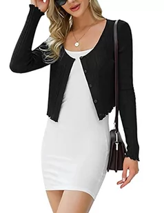 Irevial sweter kobiety lato wiosna elegancki lekki sweter damski z długim rękawem z guzikami okładka kobiety Bolero krótki, Czarny, XL