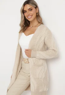 Jasnobeżowy Puszysty Kardigan Niezapinany Heliture