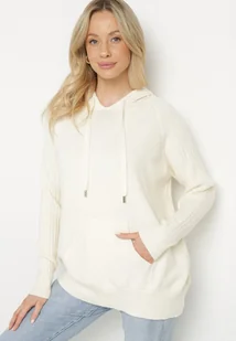 Jasnobeżowy Sweter z Kapturem i Kieszenią z Domieszką Kaszmiru Neriele