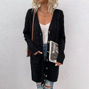 Jednolity kardigan damski zapinany na guziki - Czarny S